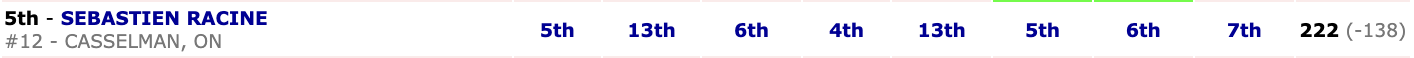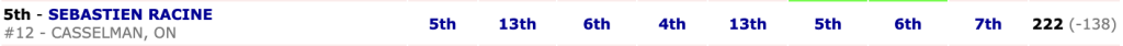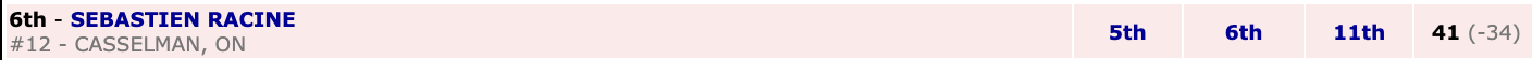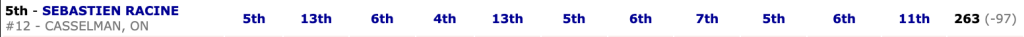 | 10 | YAM | 437 | JORDAN JARVIS | 11 | 14 | 8 | 30 |