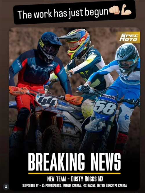 I am definitely going to be chasing the series again. I have something in the works that will help me make it happen. I am so happy to have signed as the 450 rider with the brand new Dusty Rocks MX team out of Alberta. They have just released our new team today.