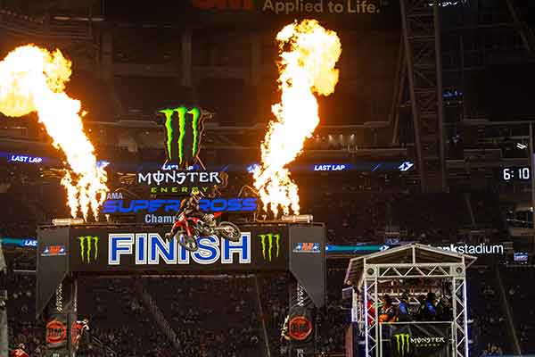 | There were opening round jitters and anticipation as the Eastern Regional 250SX Class kicked off in Minneapolis. Monster Energy Pro Circuit Kawasaki’s Austin Forkner jumped into the lead at the Holeshot stripe with Jett Lawrence quickly into the second spot ahead of Forkner’s teammate Cameron McAdoo. Lawrence put an aggressive inside-line pass on Forkner less than a minute after the gate drop then rode a smooth and effortless-looking race to the first checkered flag of Eastern Regional 250SX Class competition. Forkner held second place to the end, and McAdoo grabbed third after fending off a mid-race challenge by Monster Energy Star Racing Yamaha’s Jeremy Martin. Rockstar Energy Husqvarna Factory Racing’s RJ Hampshire rounded out the top five after closing on Martin but running out of time for a pass attempt. Next Saturday the Supercross series makes its first 2022 visit to Texas with the second of three Triple Crown Events set for February 26th inside AT&T Stadium in Arlington. The unique Triple Crown schedule foregoes qualifying for three races that combine to determine the event winners and pay single-event championship points. For tickets, the full 2022 schedule, photos & videos, and airtimes on Peacock, NBC, CNBC, and USA Network please visit SupercrossLIVE.com. |